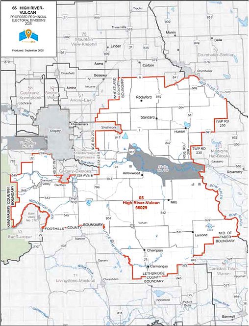 Next door in Southern Alberta, it is being proposed to collapse and eliminate the current Cardston-Siksika riding in favour of the creation of the new High River-Vulcan electoral division, resulting in a population of 56,029.