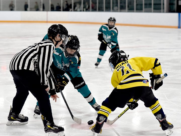 Times Photo by Meg Noguchi. BATTLE STARTS: U11 Taber Oil Kings played against Magrath Chiefs on Saturday afternoon at the Taber Ice Arena.By Cole Parkinson